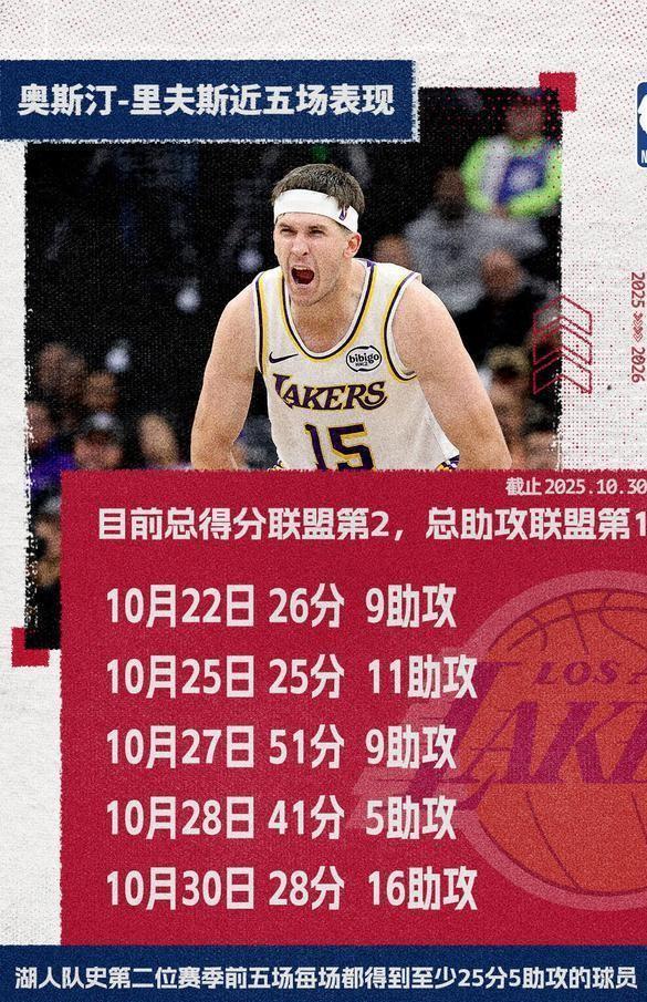 里夫斯单场至少40分5篮板10助攻5三分 成湖人队史第三人