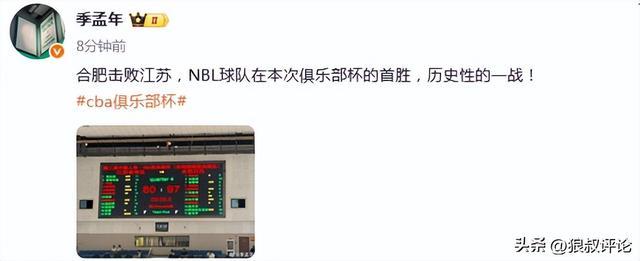 媒体人“季孟年”发文点评“合肥击败江苏,NBL球队在本次俱乐部杯的首胜,历史性的一战!”。