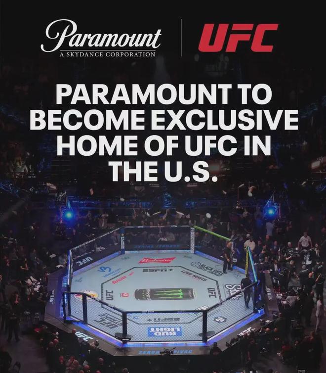 除了足球,派拉蒙+的体育内容布局早已全面铺开。无论是NFL、篮球NCAA等传统北美体育项目,欧冠、英超、意甲等足球赛事,还是印度板球联赛、高尔夫PGA巡回赛、橄榄球世界杯等,都已被纳入派拉蒙+的体育内容矩阵当中。今年派拉蒙更是以7年77亿美元价格从ESPN拿下UFC的独家版权,并将TKO旗下的拳击赛事Zuffa一并收入囊中。